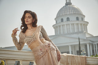 The choice of fabric plays a crucial role in the overall look of the saree. Silk sarees offer a rich, luxurious feel, while chiffon and georgette sarees provide a lighter, more flowing look. For evening events, consider sarees with a subtle shimmer or metallic accents.