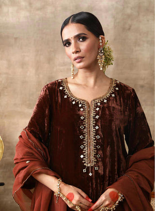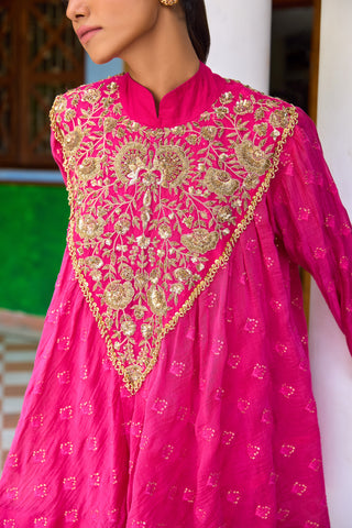 A-line Printed Kota Doria Kurta With Pintex, Suit Set Of 3