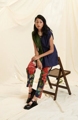 Blue & Black Cotton Satin Sleeveless Short Party Dress