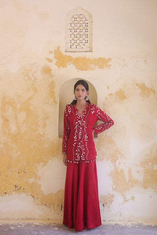 Mira Mirror Jacket With Pleated Bustier And Draped Saree