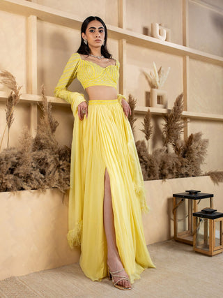 Hand Embroidered Long Jacket & Satin Skirt Set