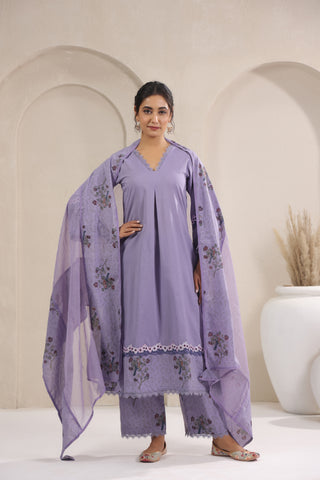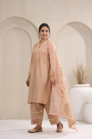 A-line Printed Kota Doria Kurta With Pintex, Suit Set Of 3