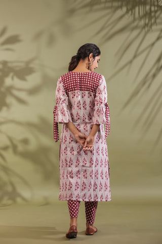 Pink, Hand Block Printed With Kota Doria & Cotton Co-ord Set Of 2