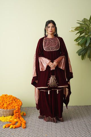 Autumn Ember Velvet Suit with Scalloped Tissue Dupatta