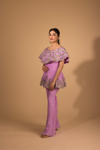 Leather & Multi Resham Embroidered Peplum Top & Sharara Set