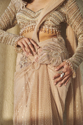 Pearl & Swarovski Embroidered Drape Saree